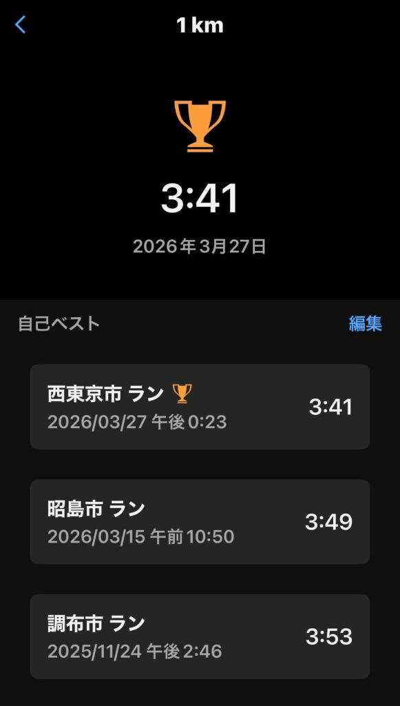 なんと1キロのPB(自己ベスト)を出してしまいました。